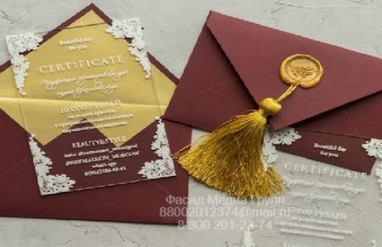 РПК Фасад Медиа Групп разработало дизайн и изготовила подарочные сертификаты для нашего клиента