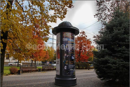 Рекламно-производственная компания "Фасад Медиа Групп" занимается изготовлением тумбы и пилларсы «под ключ»: