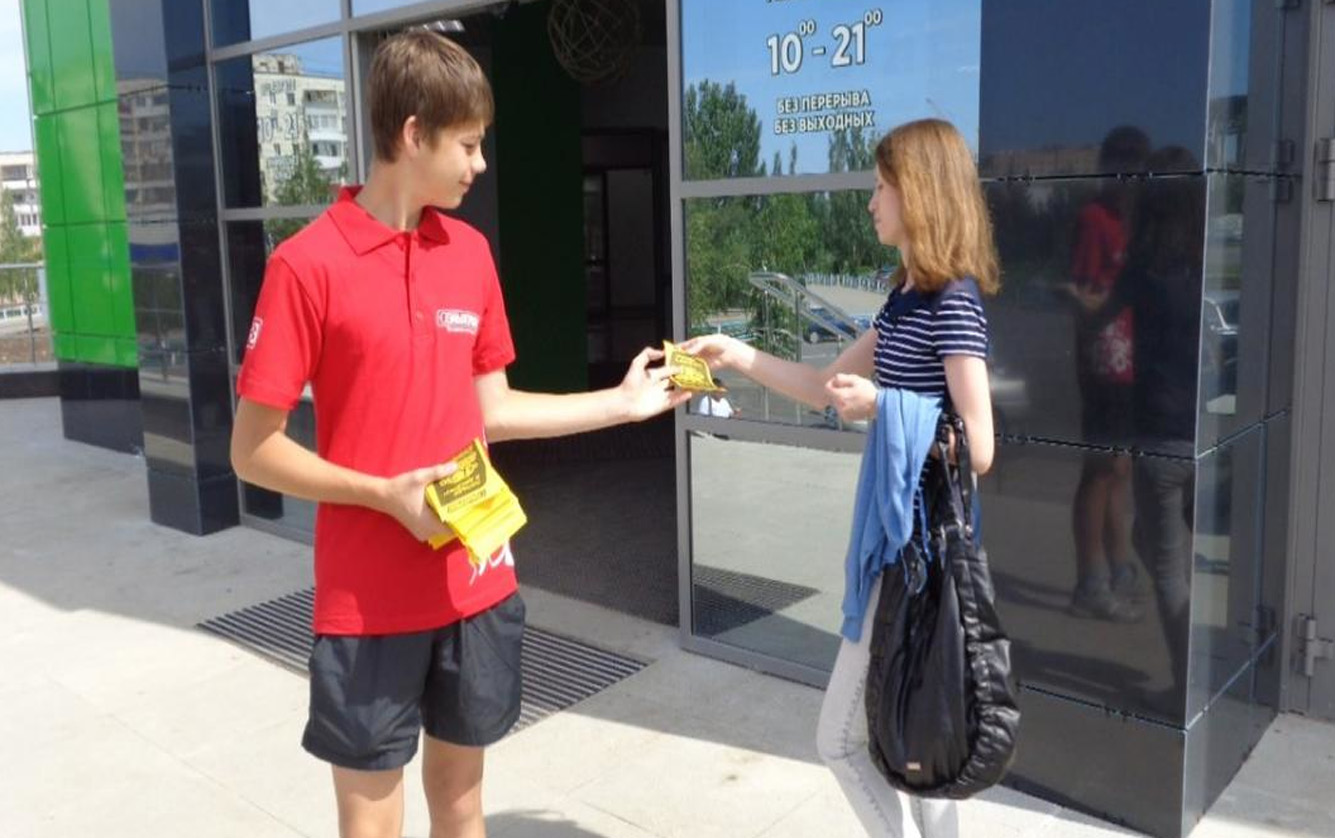 Пример раздачи листовок, буклетов, флаеров, афиш и другой печатной продукции. Фото 1