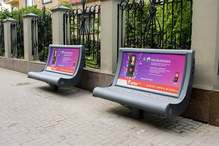 Скамейки относятся к числу самых эффективных рекламных конструкций. Столичные рекламодатели предпочитают размещать рекламу именно на скамейках, поскольку данная рекламная конструкция обладает целым рядом преимуществ. К их числу относятся: