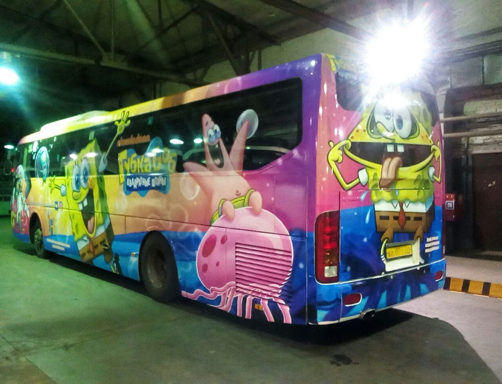 3) процесс брендирования (оклейки) автобуса рекламой: