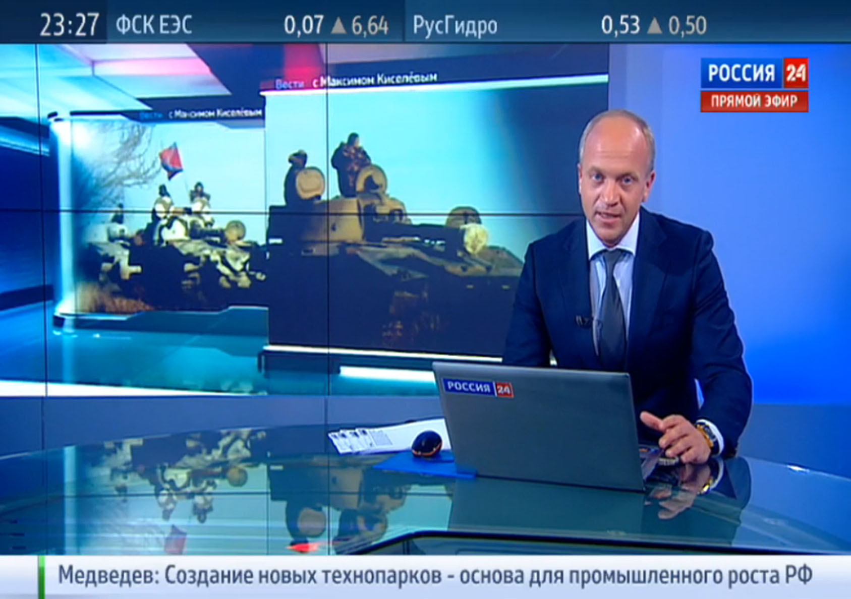 Россия 24 – это российский информационный телеканал. В мае 2006 г. генеральный директор ВГТРК Олег Добродеев пообещал В. В. Путину запустить информационный телеканал. Вскоре 1 июля 2006 г. в 9:00 ч. в эфир вышел новый телеканал под брендом «Вести 24». Вещание телеканала осуществлялось через спутник в базовом пакете «НТВ-Плюс». Эфирное вещание началось только в январе 2007 г. В настоящее время «Россия 24» является государственным федеральным информационным телеканалом, входящим в состав ВГТРК. Главный редактор – Евгений Бекасов.