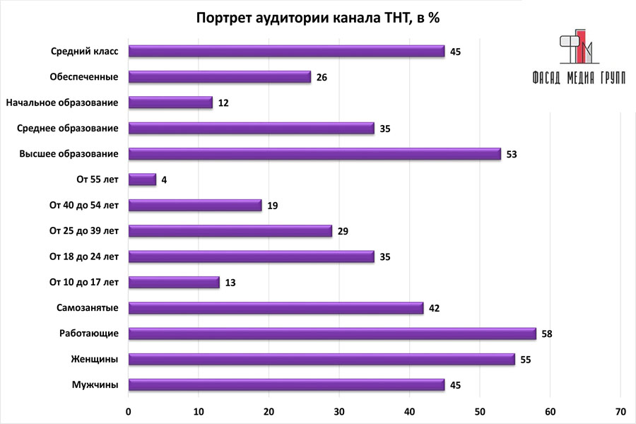 Благодаря качественному, сбалансированному контенту аудитория «ТНТ» многочисленна и разнообразна.