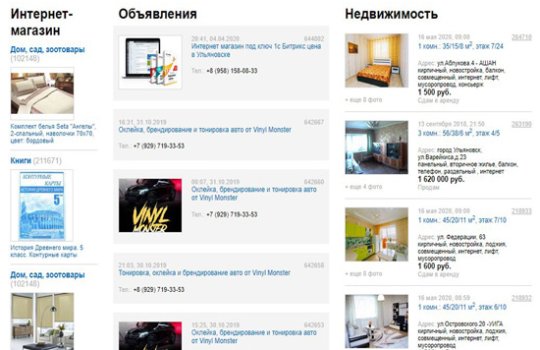 Пример текстовой рекламы в городском интернет-портале представлен на фото: