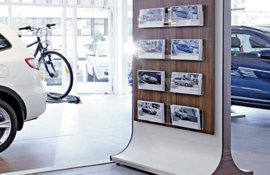 Реклама в автосалонах отличается тем, что рекламные материалы располагаются на уровне глаз потенциального клиента или покупателя. Удачное расположение рекламы приводит к тому, что листовки, буклеты и другие форматы рекламы в автосалонах хорошо видны и обеспечивают 100% читаемость со стороны посетителей.