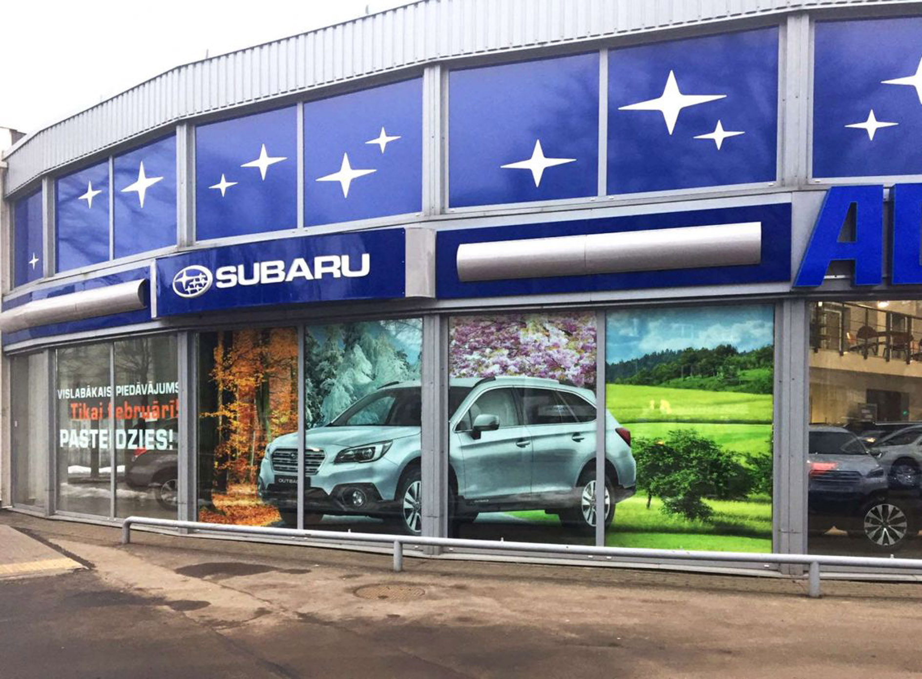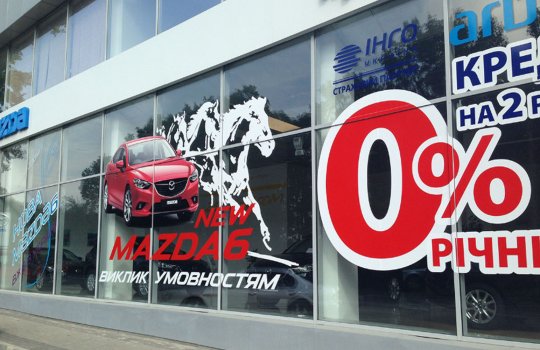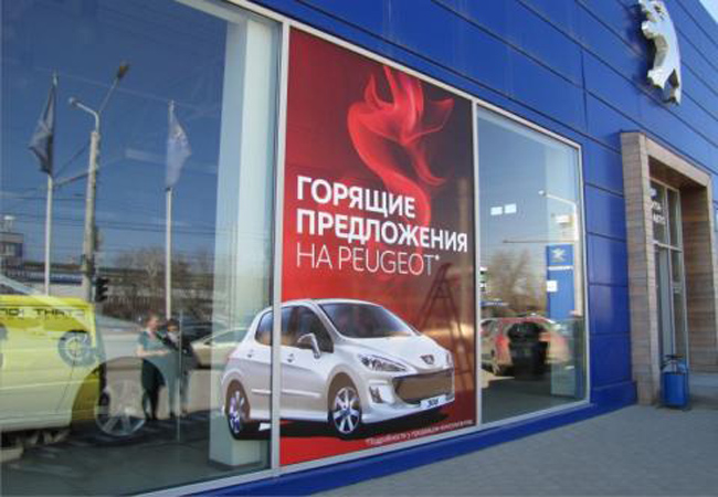Примеры наших работ при размещении рекламы в автосалонах представлены ниже: