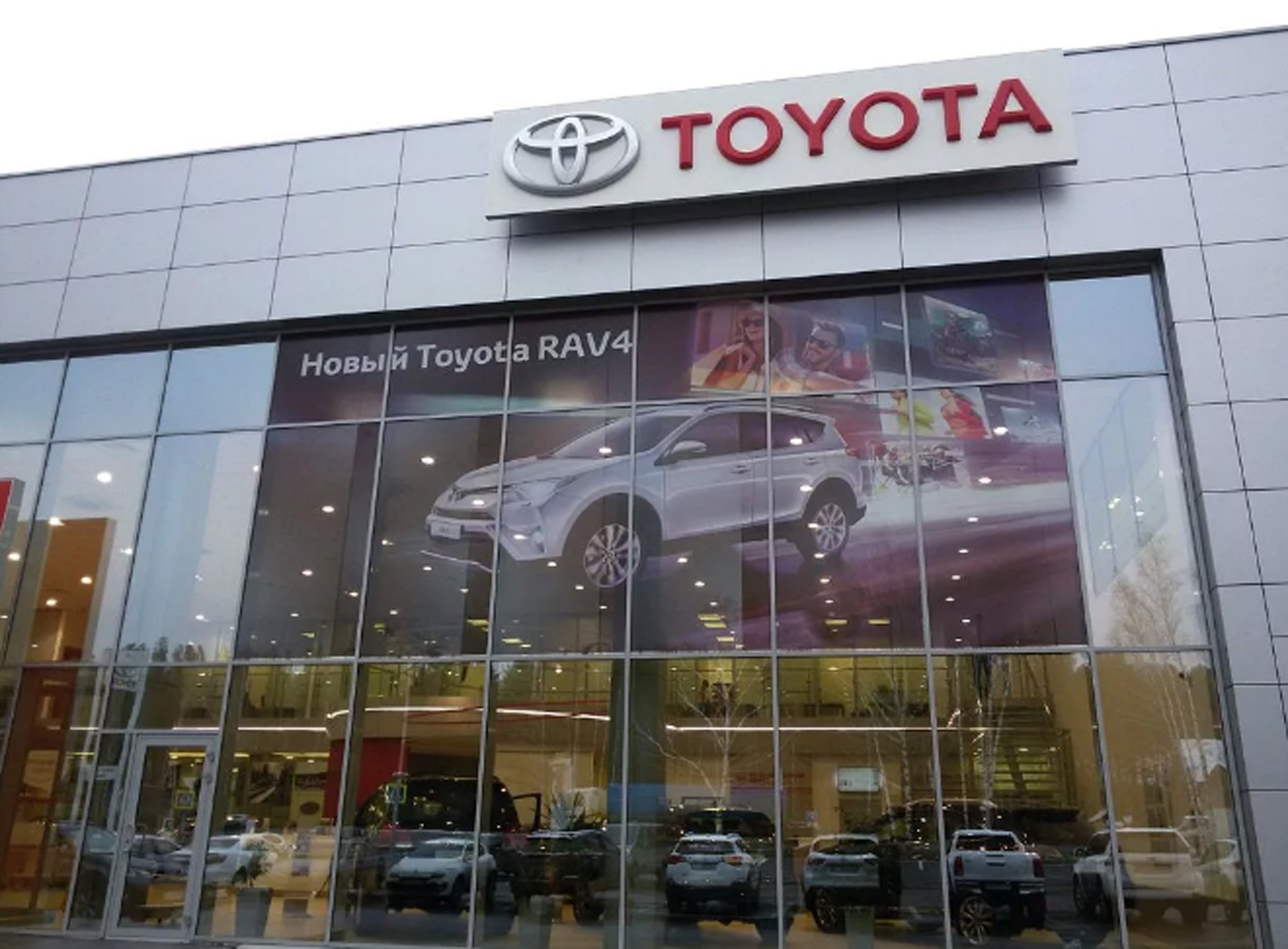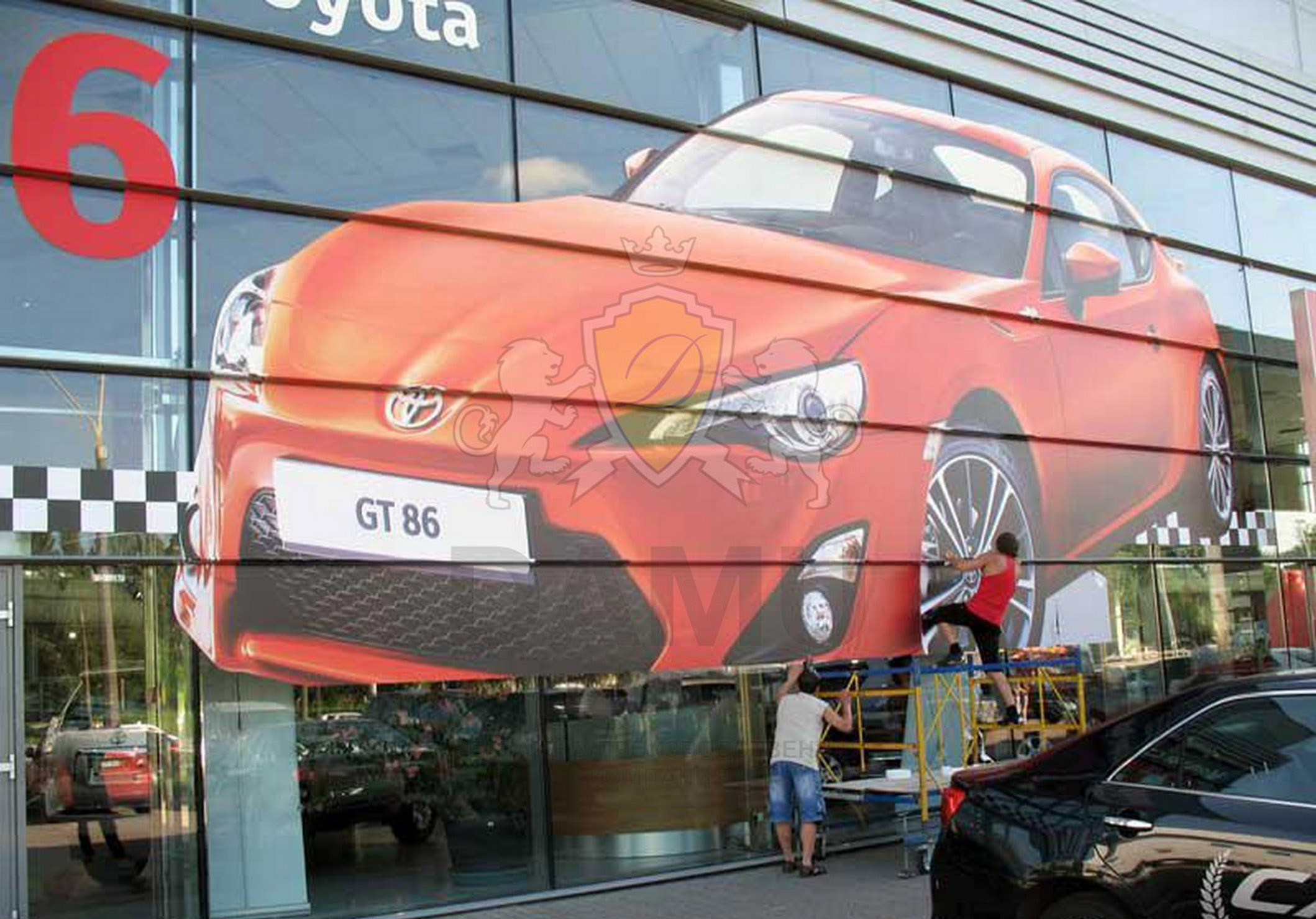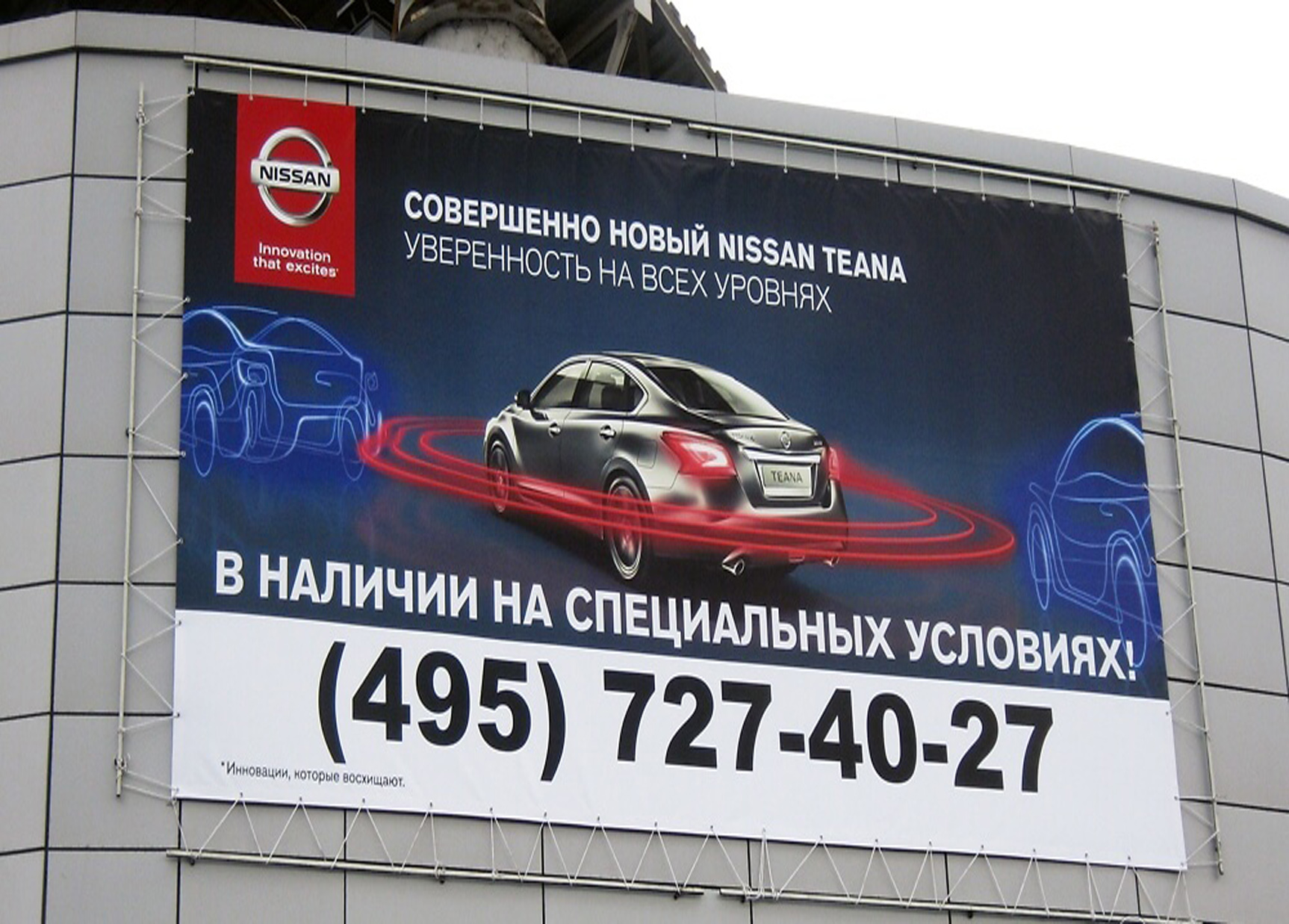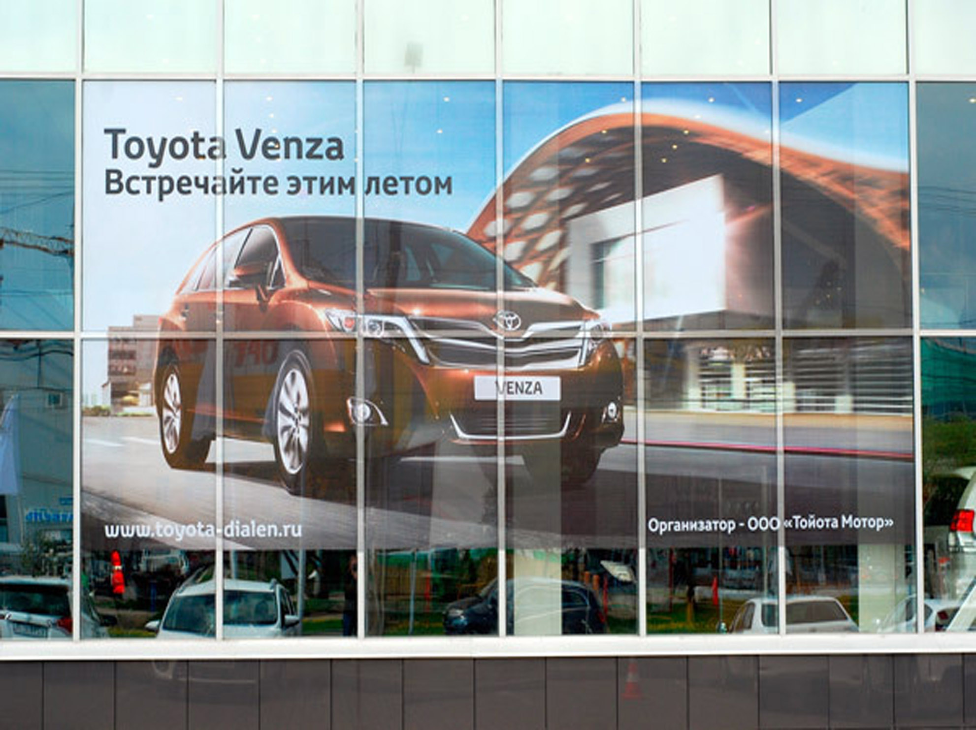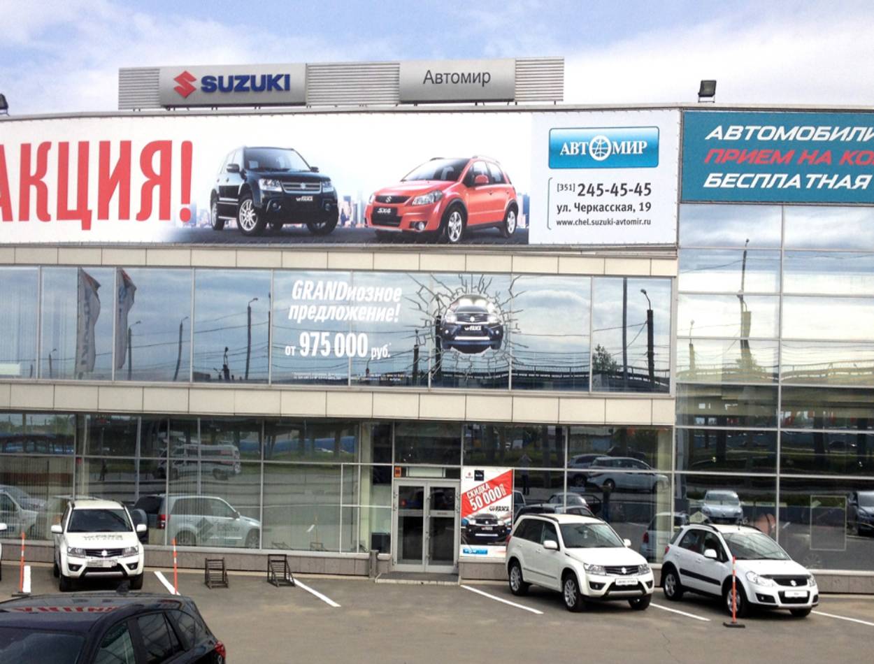 Пример рекламного баннера на здании автосалона: