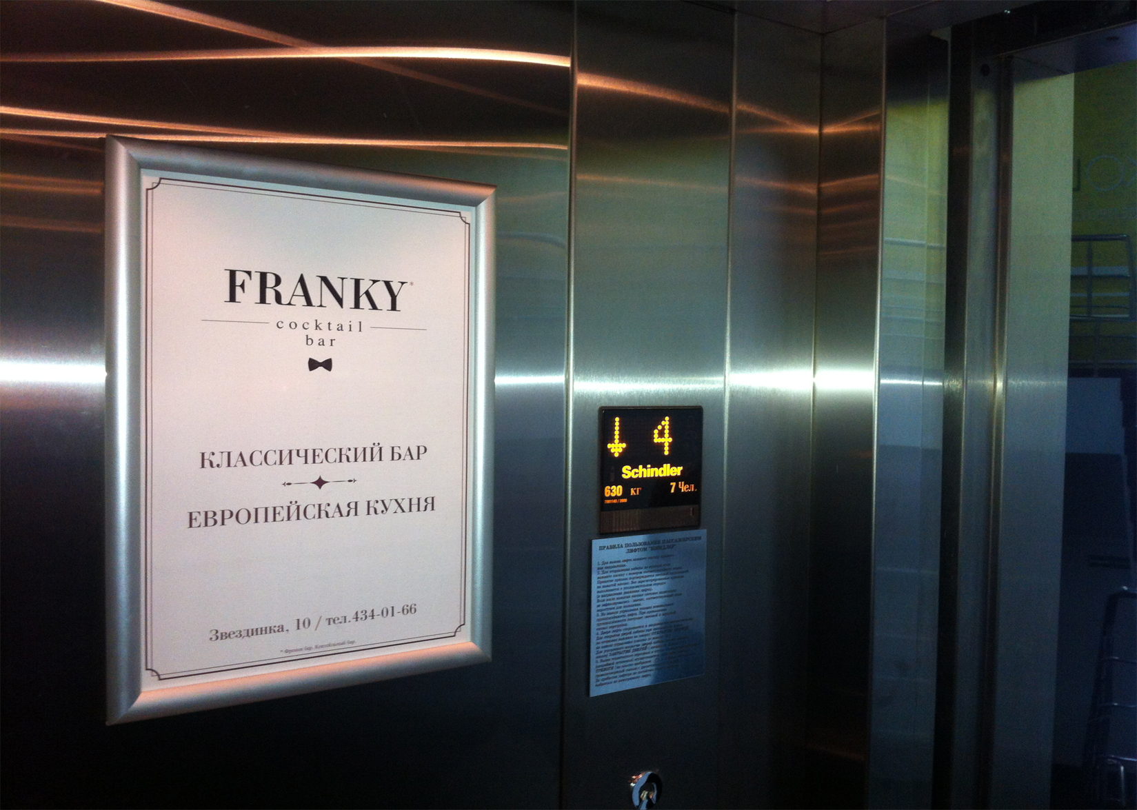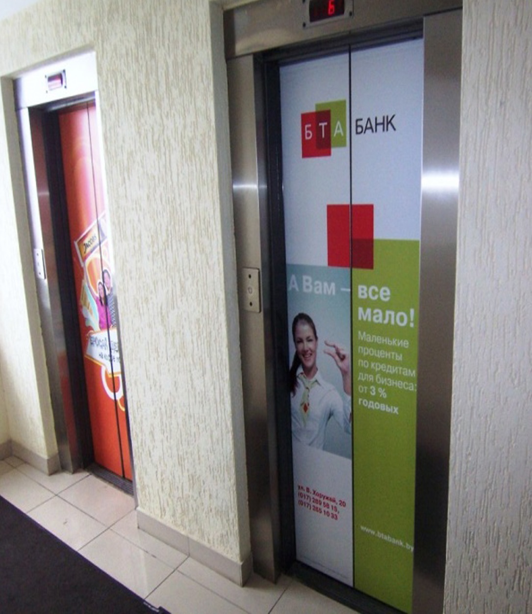 Пример рекламы в лифтах в отелях: