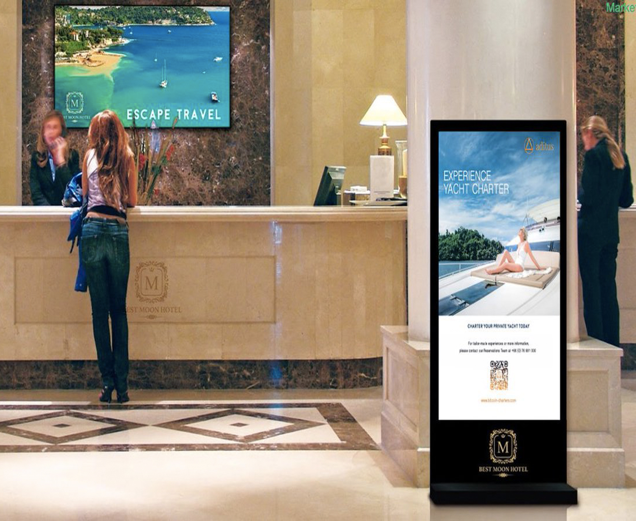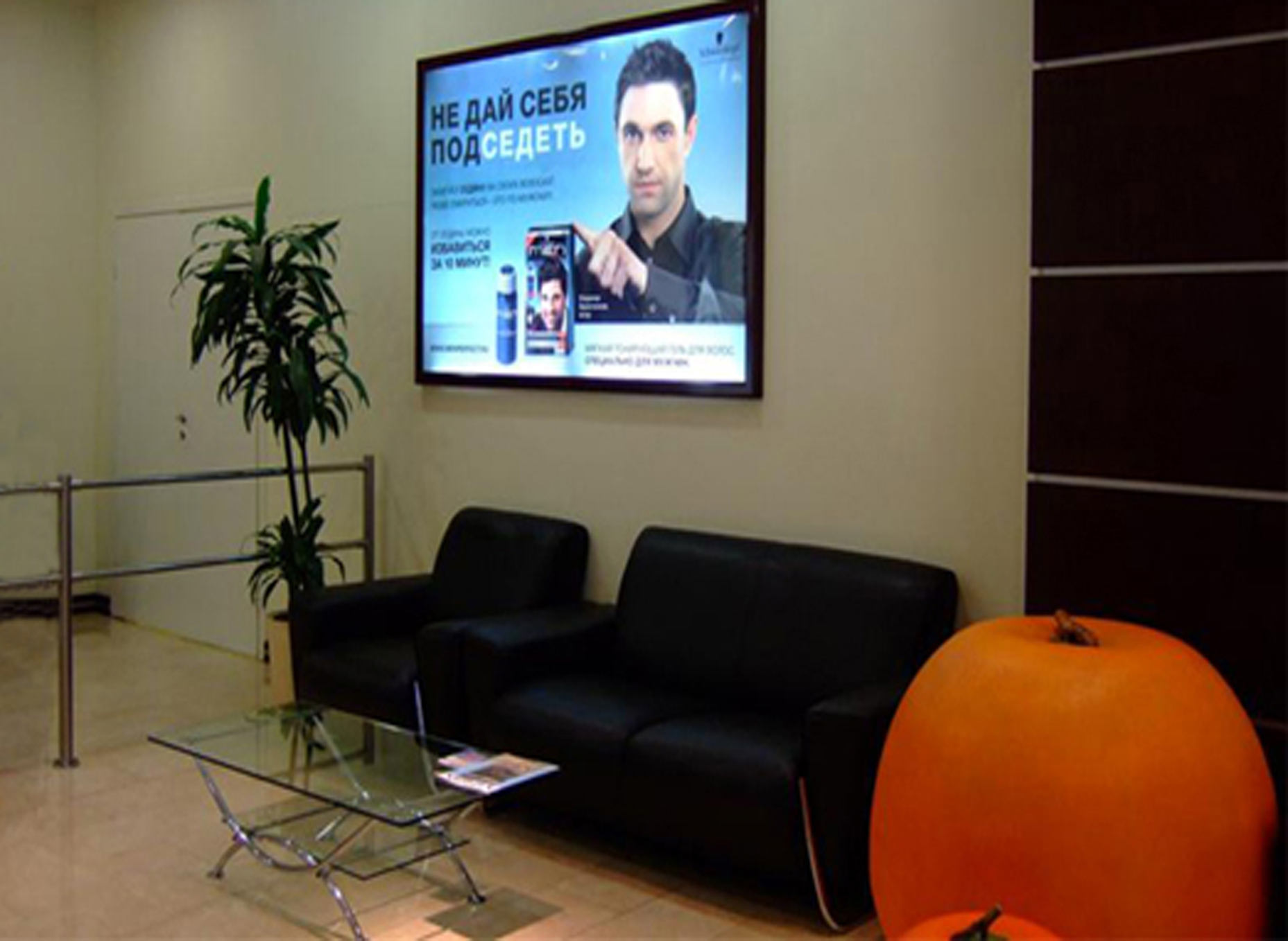 Пример рекламы на мониторе в отеле: