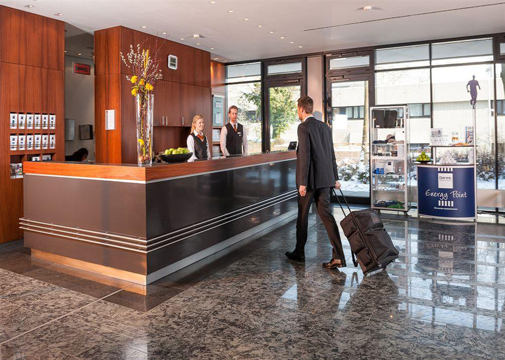 Пример брендирования входа и зоны ресепшн в отелях: